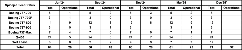 - Aug’25 – No Level 1 safety issues found by DGCA in the last one year. Finalizes damp lease contracts to induct 10 Boeing 737 aircrafts.